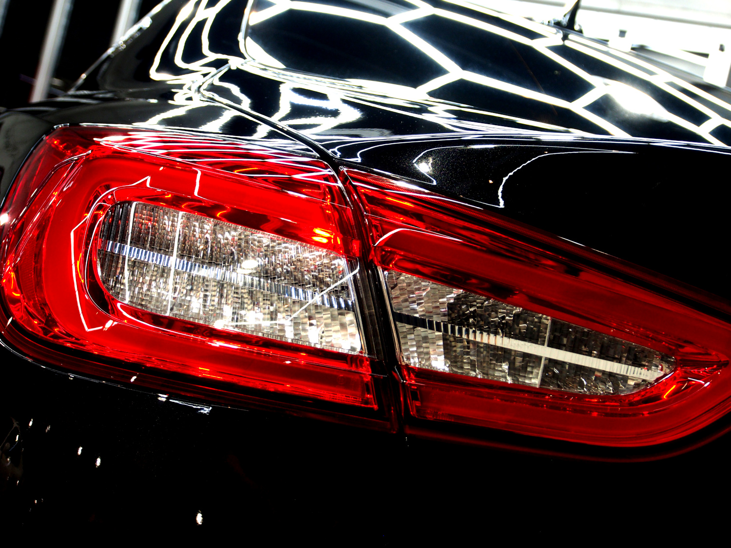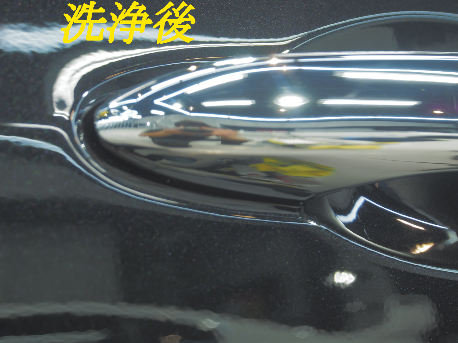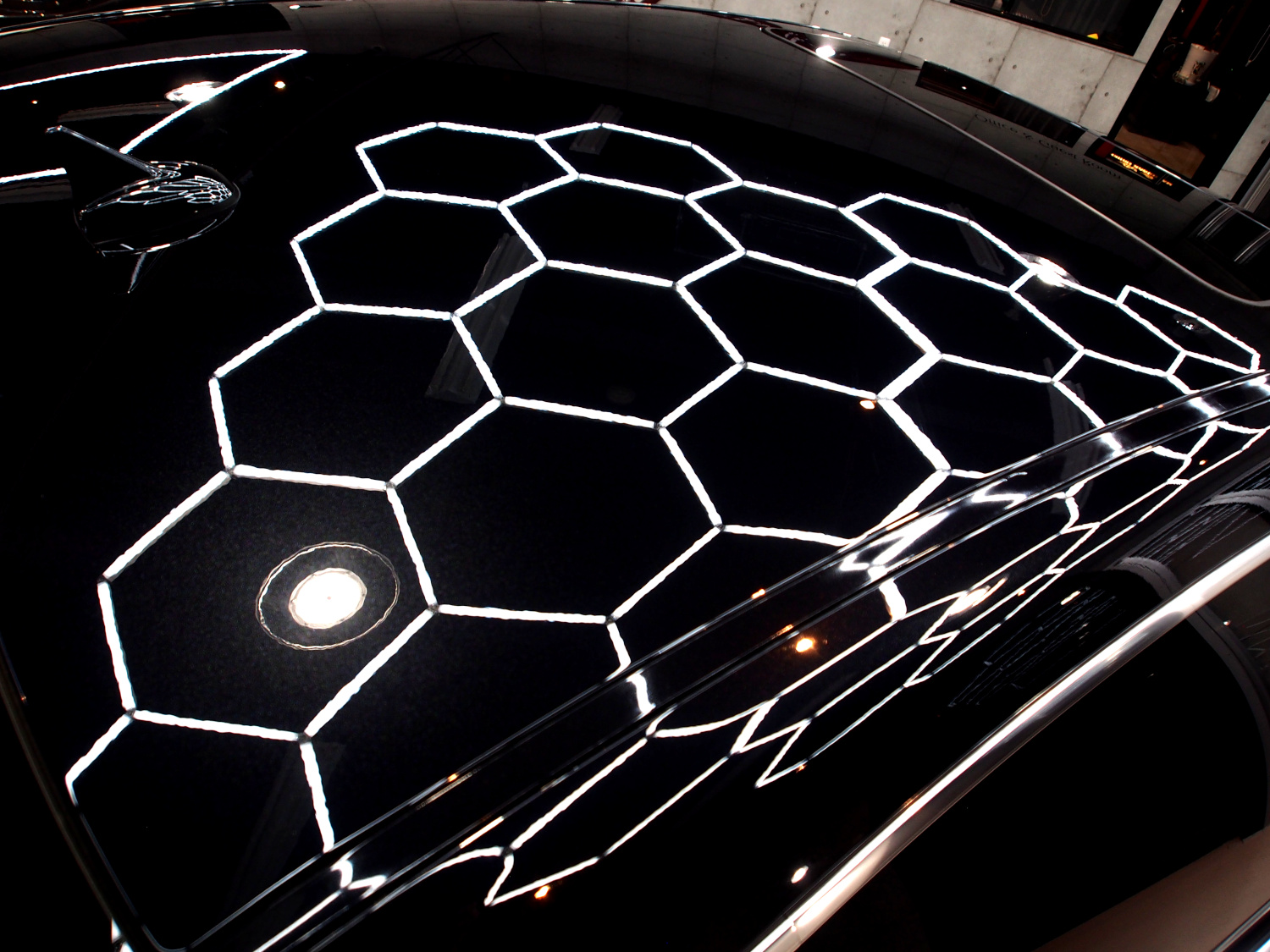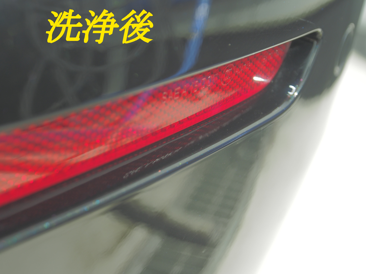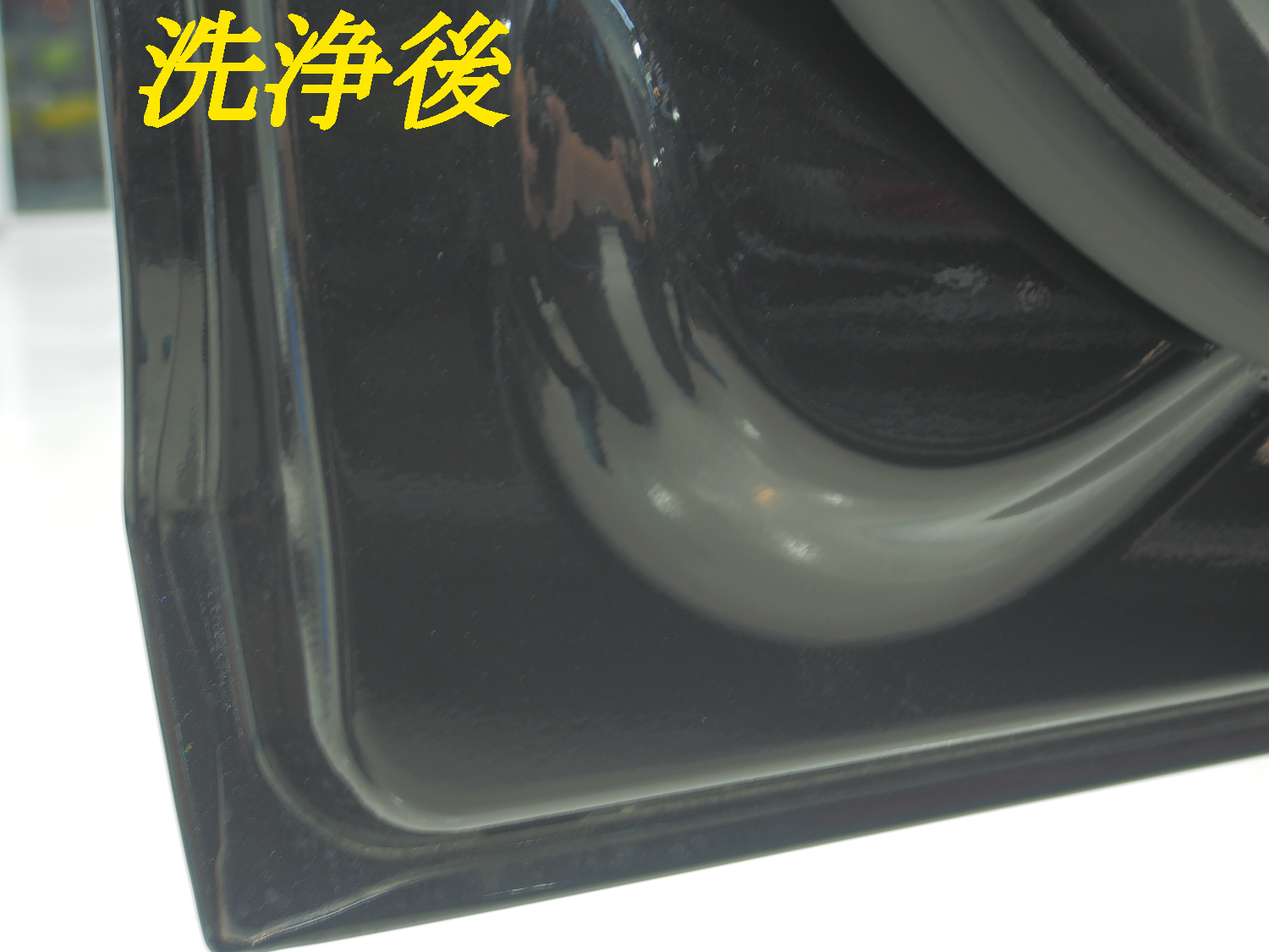 下地処理が完成した塗装面は、とてもクリアな仕上がりとなります。下地処理後はコーティング前に脱脂洗車を行います。リボルト熊本では、洗車に使う水にも拘りをもっております。水道水にはイオンデポジットの原因となるミネラル分が含まれています。水道水から専用のフィルタを通した『純水』をコーティング前の仕上洗車に使用しております。水滴が残らないだけでなく純水洗車した塗装面はクッキリとしたツヤのある仕上がりとなります。