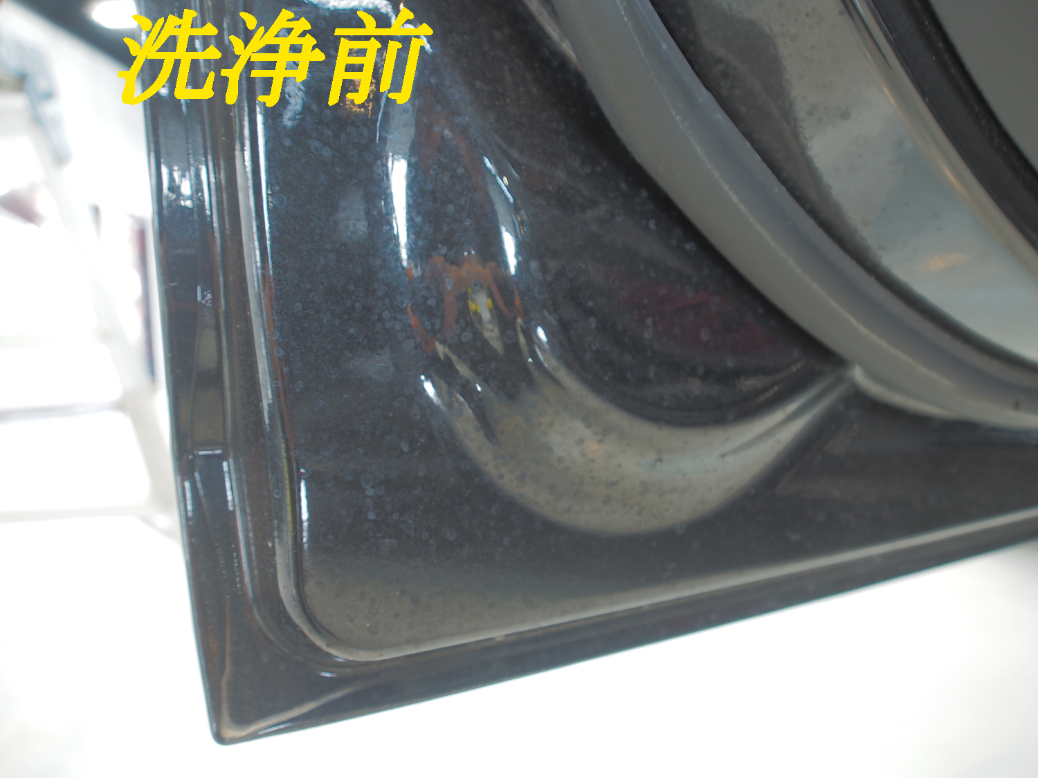 作業に入る前、細部をチェックして参りますとお全体に水シミの膜や洗車傷など多数見受けられ確かに新車時の艶とは程遠い状態でのご入庫となります。