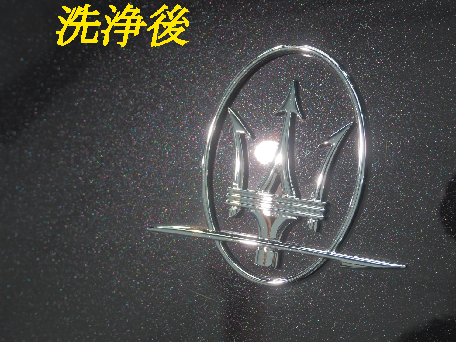 エンブレム周辺は特に水や汚れが溜まりやすく、そのまま固着してしまいます。