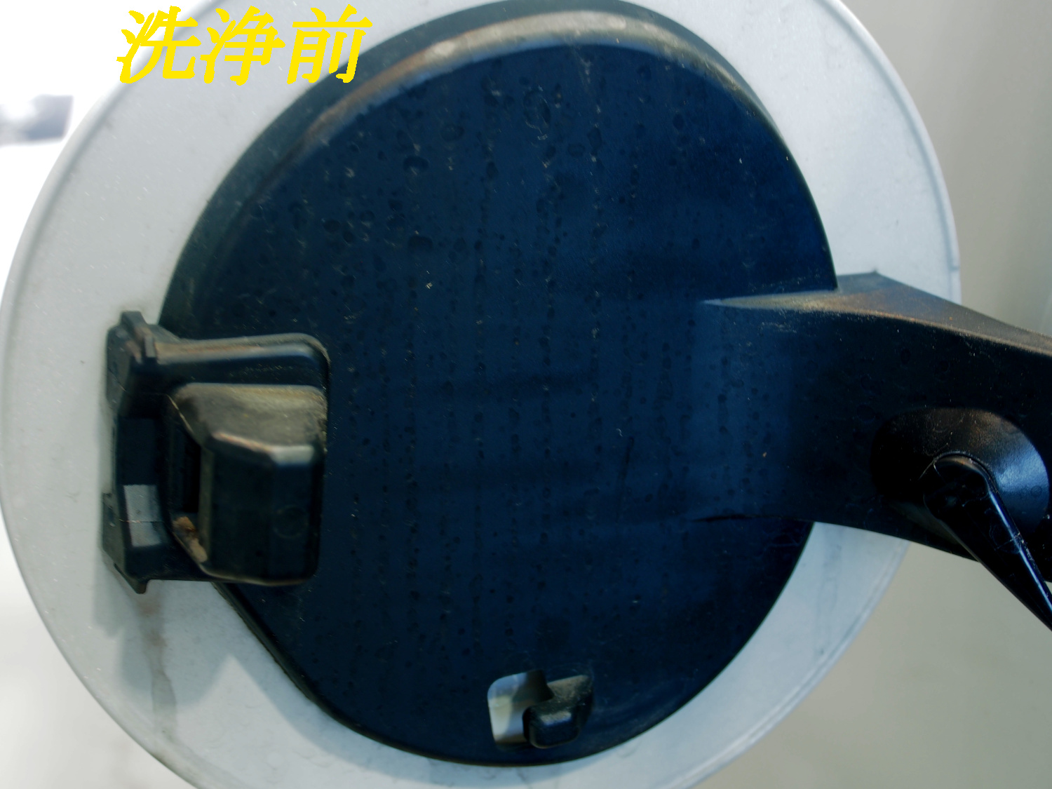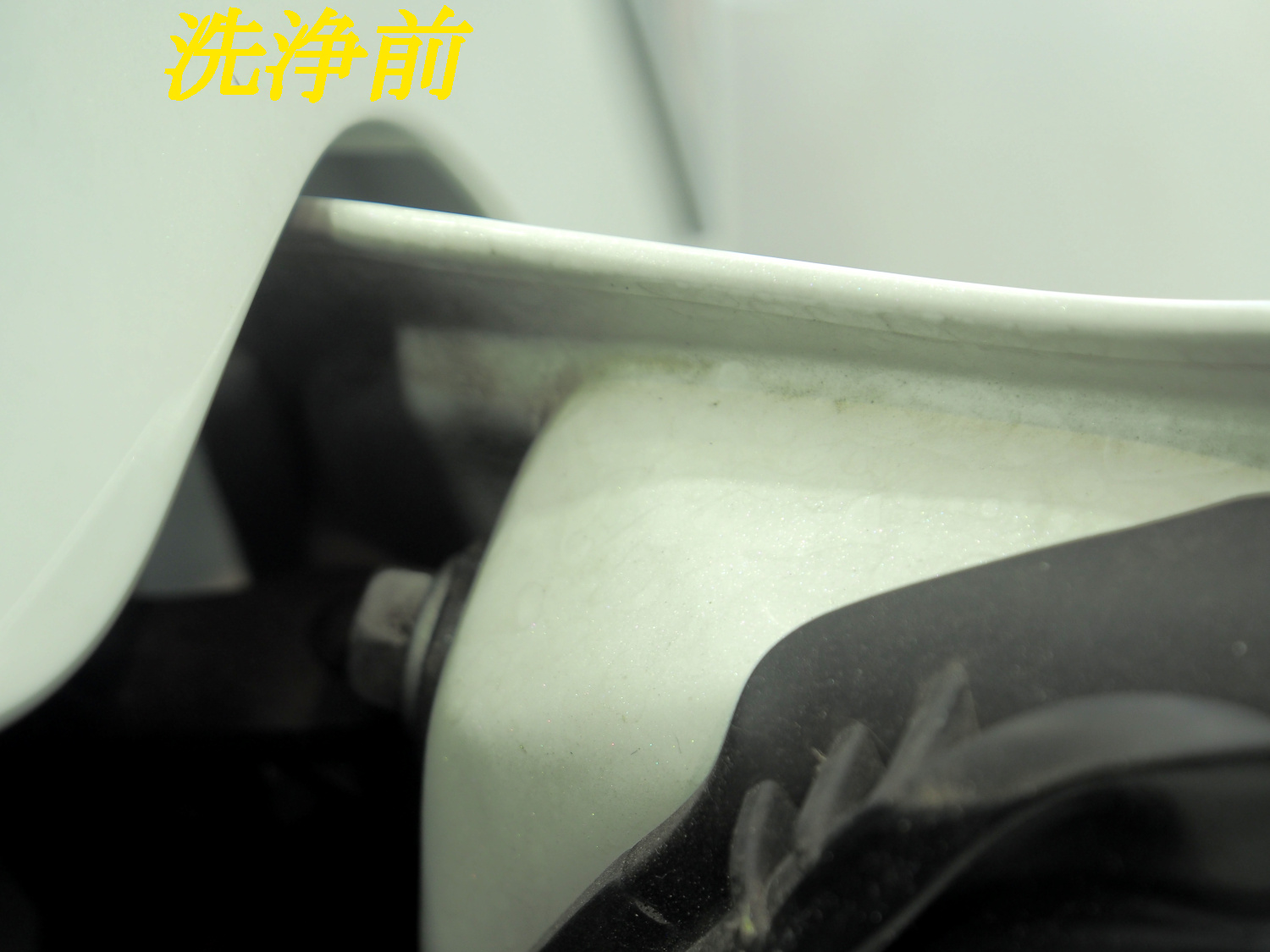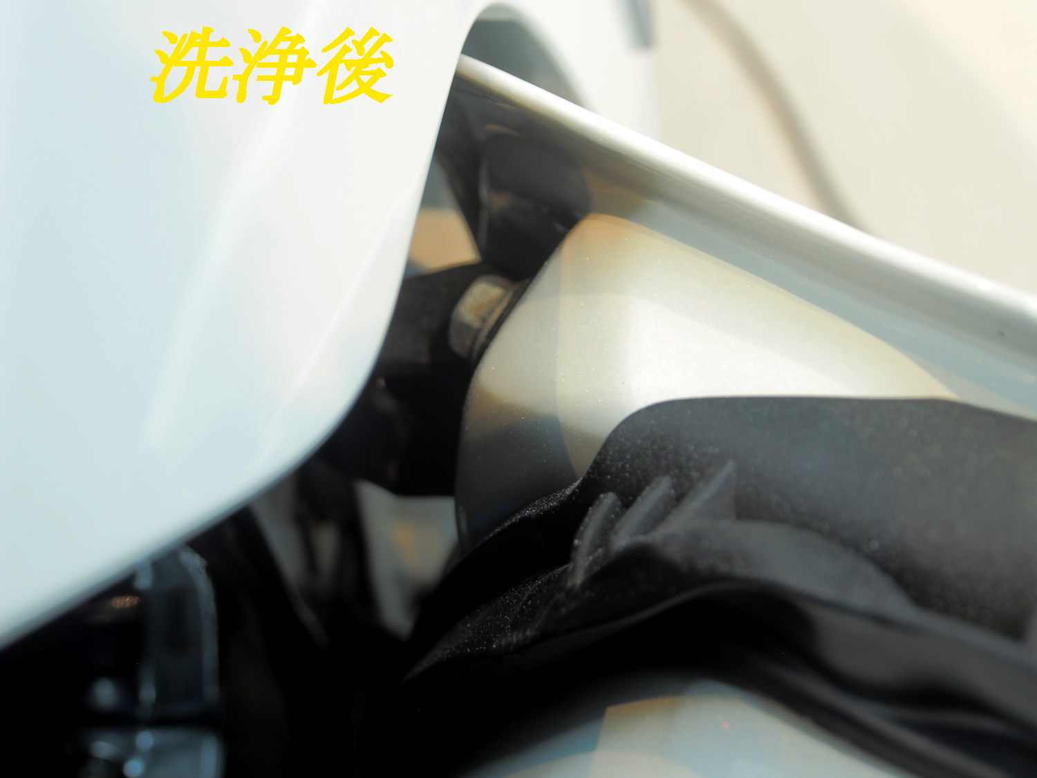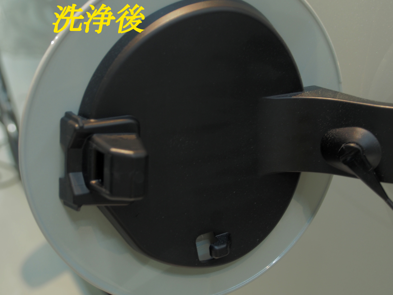 ドアヒンジやエンブレム周辺に水垢や汚れが付着していたため、専用のケミカル用品にて分解除去を行いました。