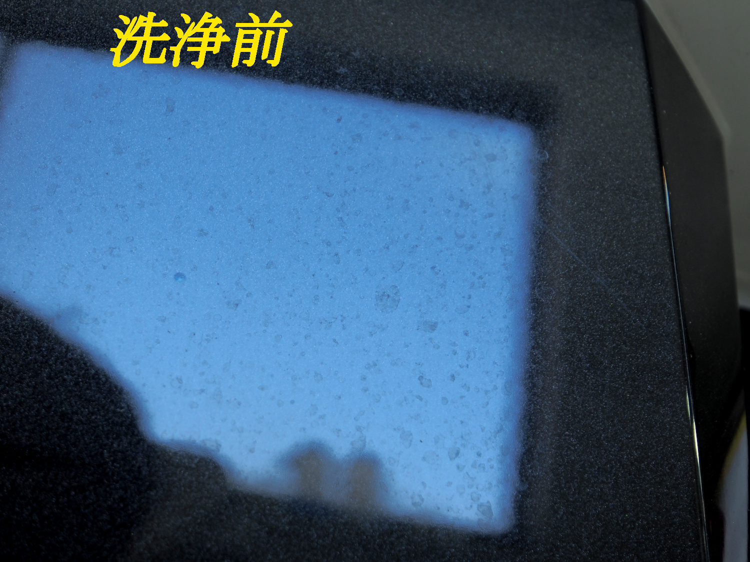 全体的に綺麗な状態でご入庫いただきましたが、ご登録から数年経過しているお車とあって細部にはやはり水シミやウロコ、洗車傷が見受けられ本来の艶ではありませんでした。その表面の不純物や光沢を一つ一つ丁寧に除去することにより最大限の艶、光沢を引き出します。