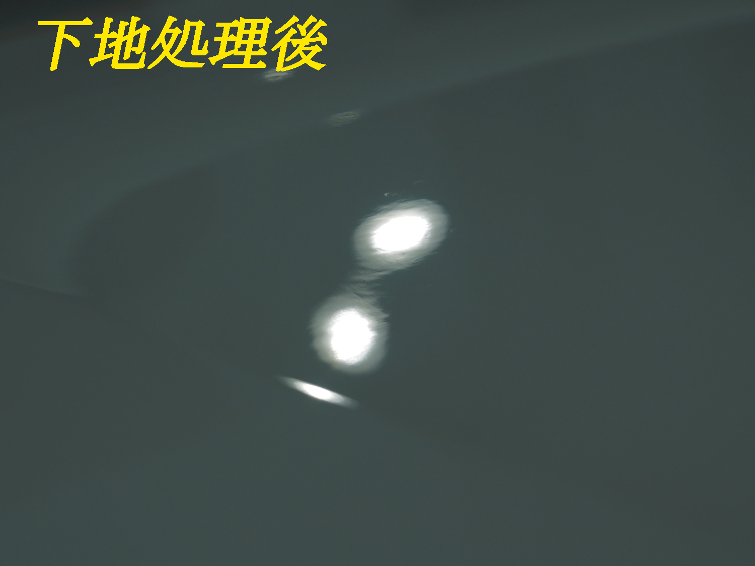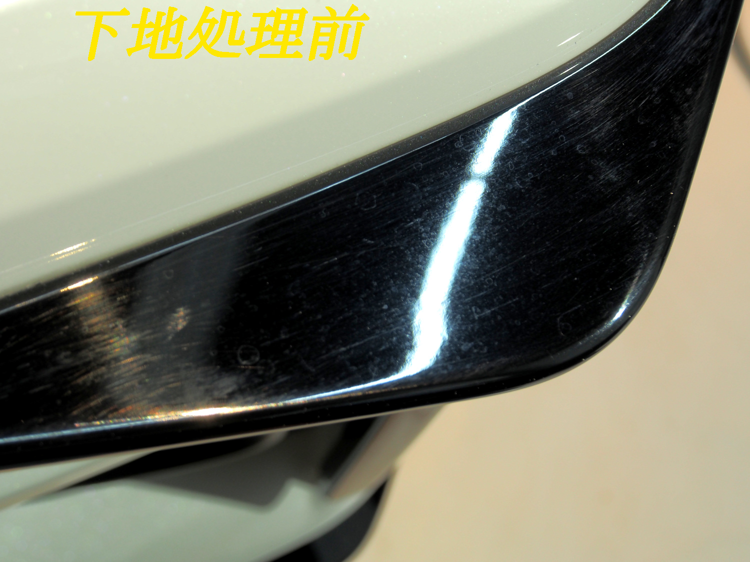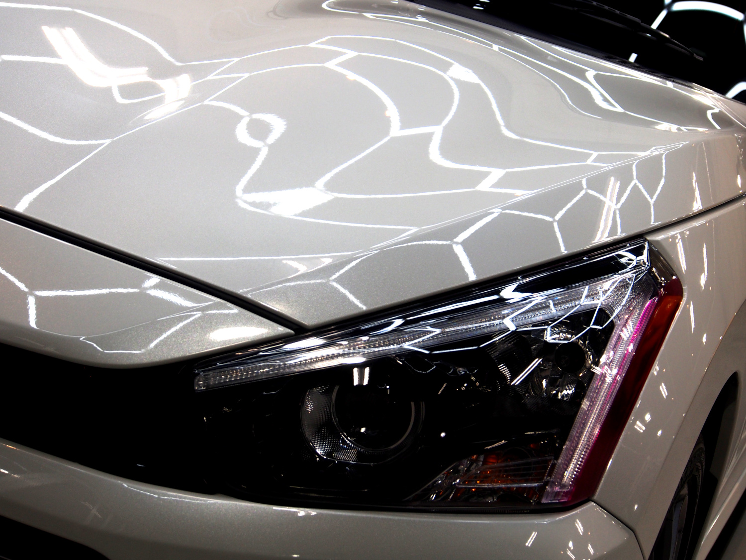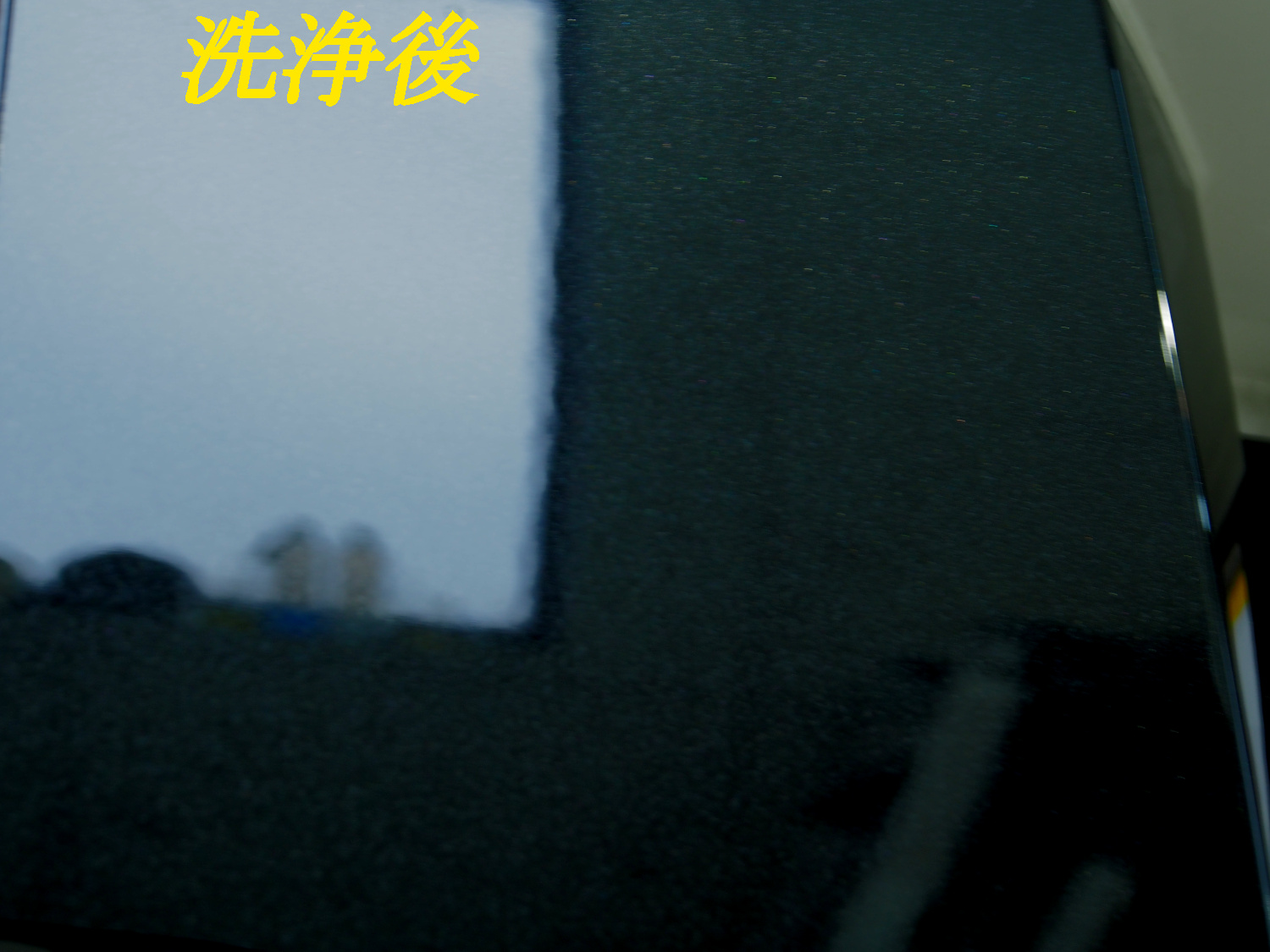 下地処理が完成した塗装面は、とてもクリアな仕上がりとなります。下地処理後はコーティング前に脱脂洗車を行います。リボルト熊本では、洗車に使う水にも拘りをもっております。水道水にはイオンデポジットの原因となるミネラル分が含まれています。水道水から専用のフィルタを通した『純水』をコーティング前の仕上洗車に使用しております。水滴が残らないだけでなく純水洗車した塗装面はクッキリとしたツヤのある仕上がりとなります。