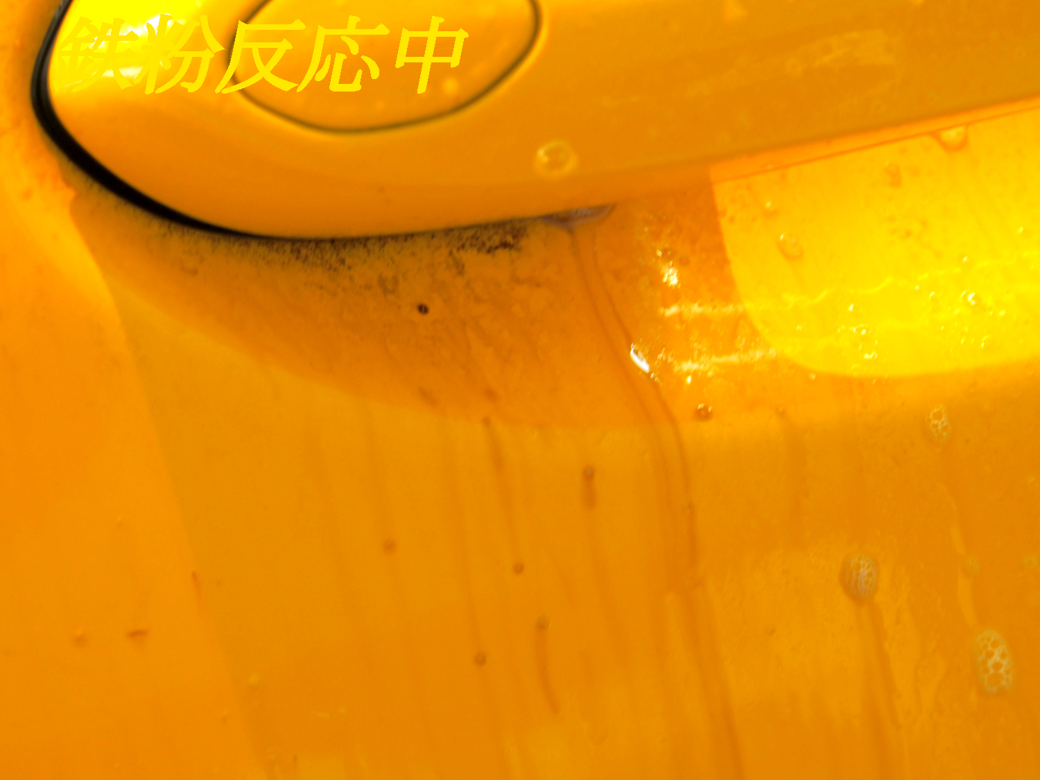 紫に反応するのはケミカル用品にて鉄粉を分解除去している証です。