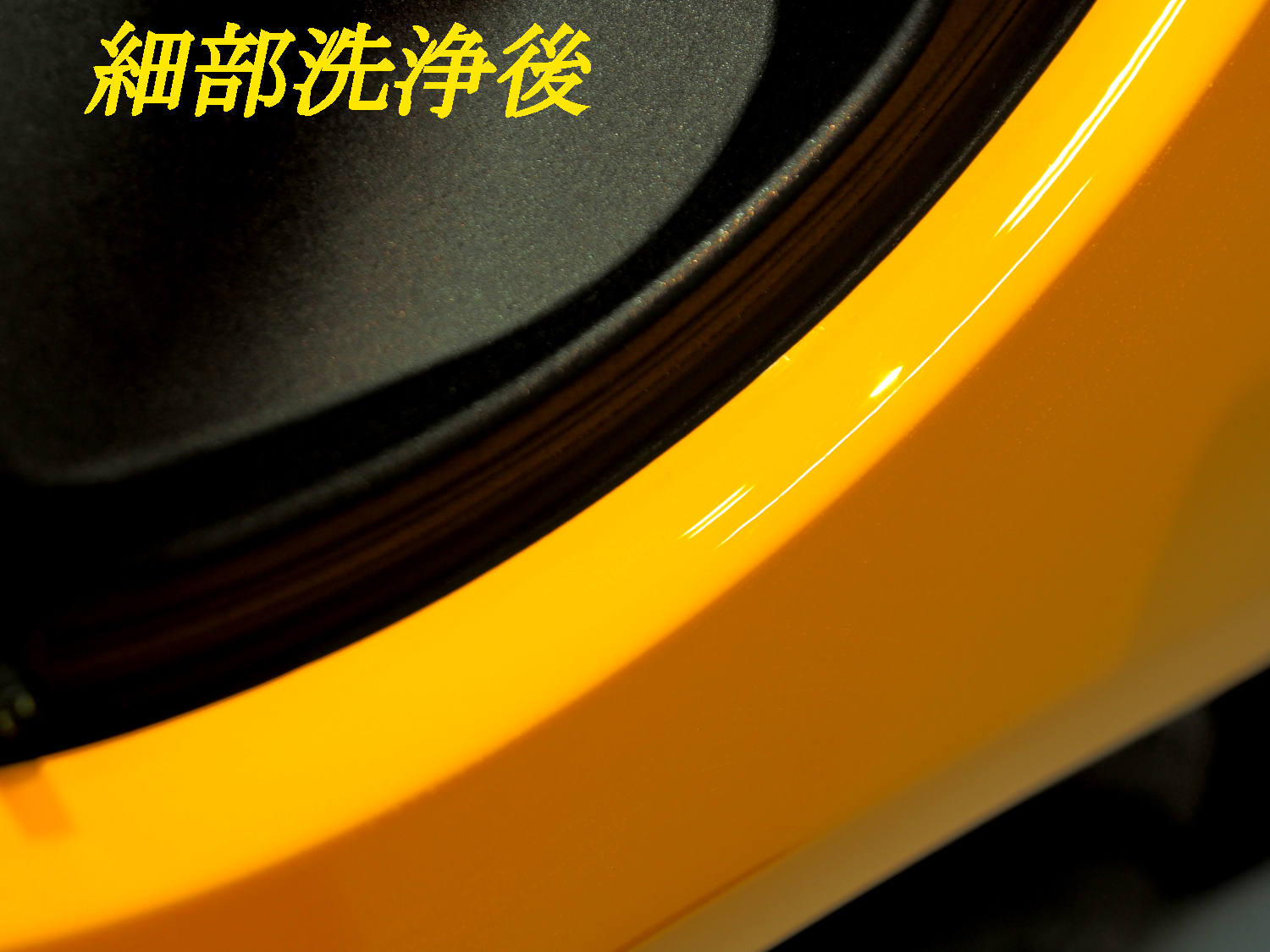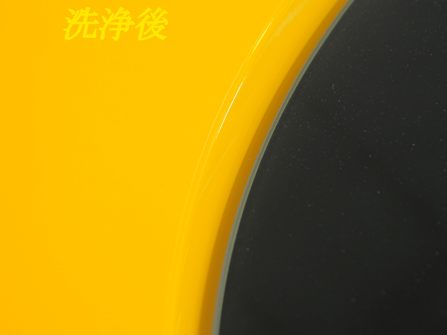 下地処理が完成した塗装面は、とてもクリアな仕上がりとなります。下地処理後はコーティング前に脱脂洗車を行います。リボルト熊本では、洗車に使う水にも拘りをもっております。水道水にはイオンデポジットの原因となるミネラル分が含まれています。水道水から専用のフィルタを通した『純水』をコーティング前の仕上洗車に使用しております。水滴が残らないだけでなく純水洗車した塗装面はクッキリとしたツヤのある仕上がりとなります。