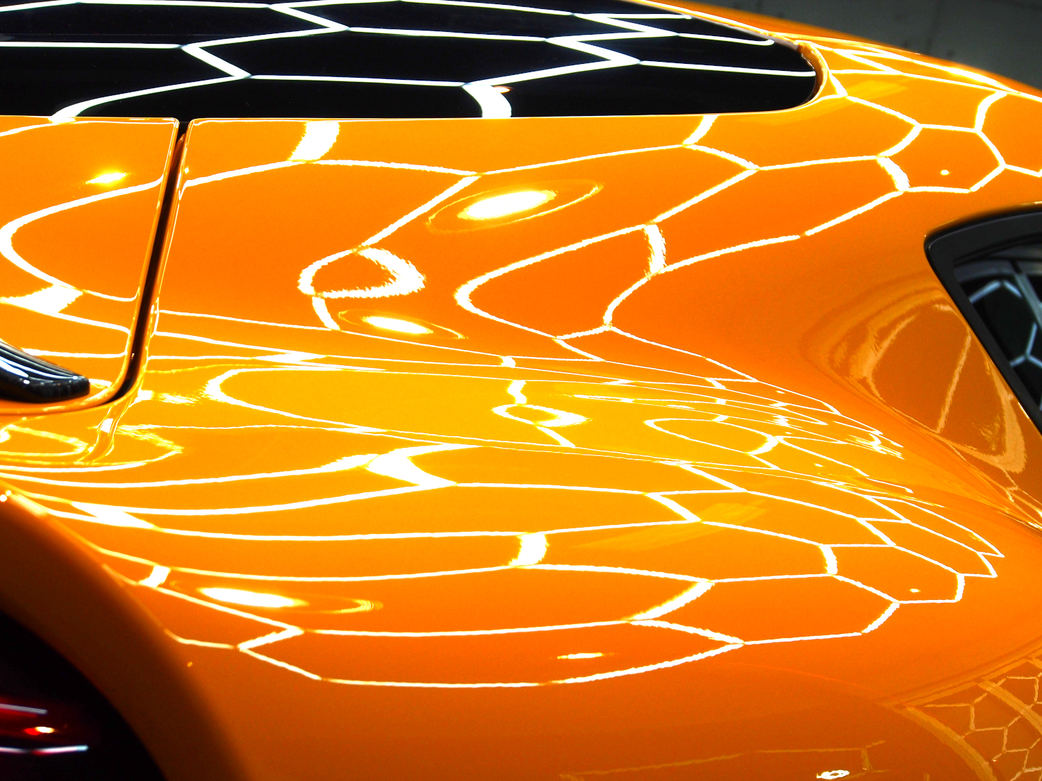 新車ですので、最低限な磨きにて塗装面を整えます。リボルトグループの高度な下地処理【Revolt Adjust System(リボルト アジャスト システム)】は『必要最低限な磨きで最大限の美しさ』を作り出す磨き技術です。グループ独自の磨き技術で、個人店や量販店では対応しきれない様々な地域独自の気候情報、メーカー情報、塗装メーカー情報などをグループメリットを活かし、リアルタイムに対応していく事が出来るのが特徴です。