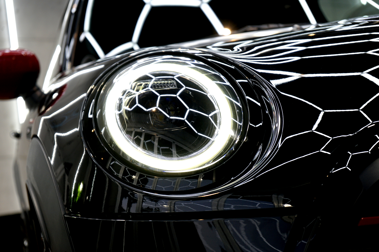 MINI特有の曲面ボディは光が流れるように映るため、傷や曇りがとても分かりやすいのが特徴です。