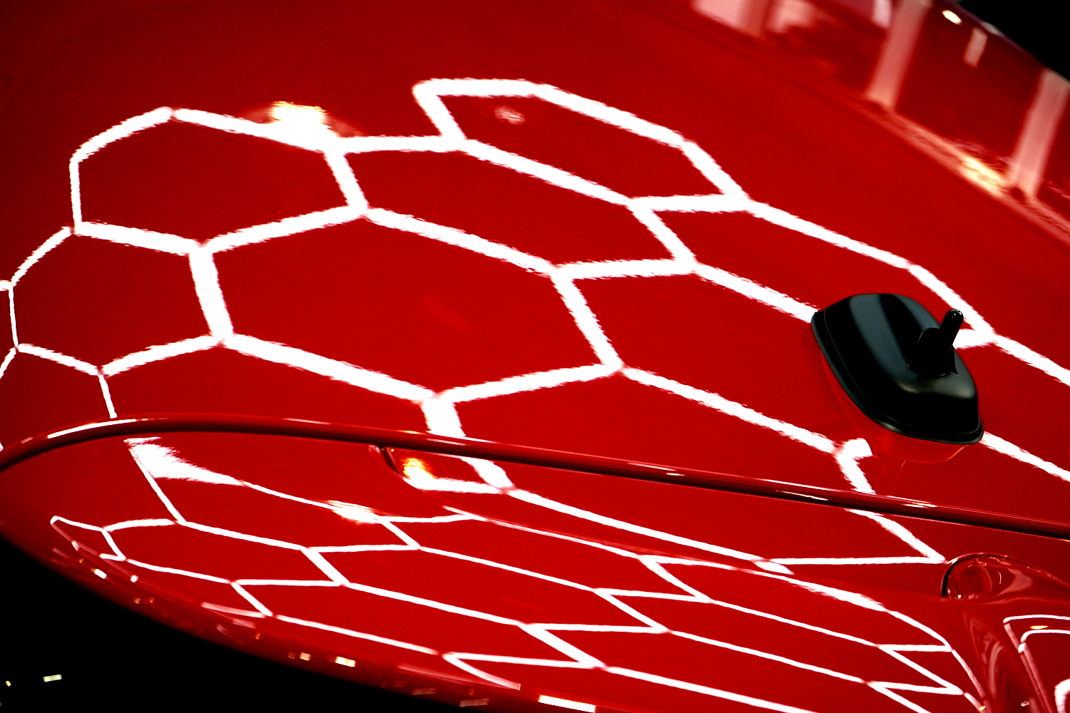 深い赤のアクセントやJCWの力強いプレスラインも、キレのある光の反射に変化。