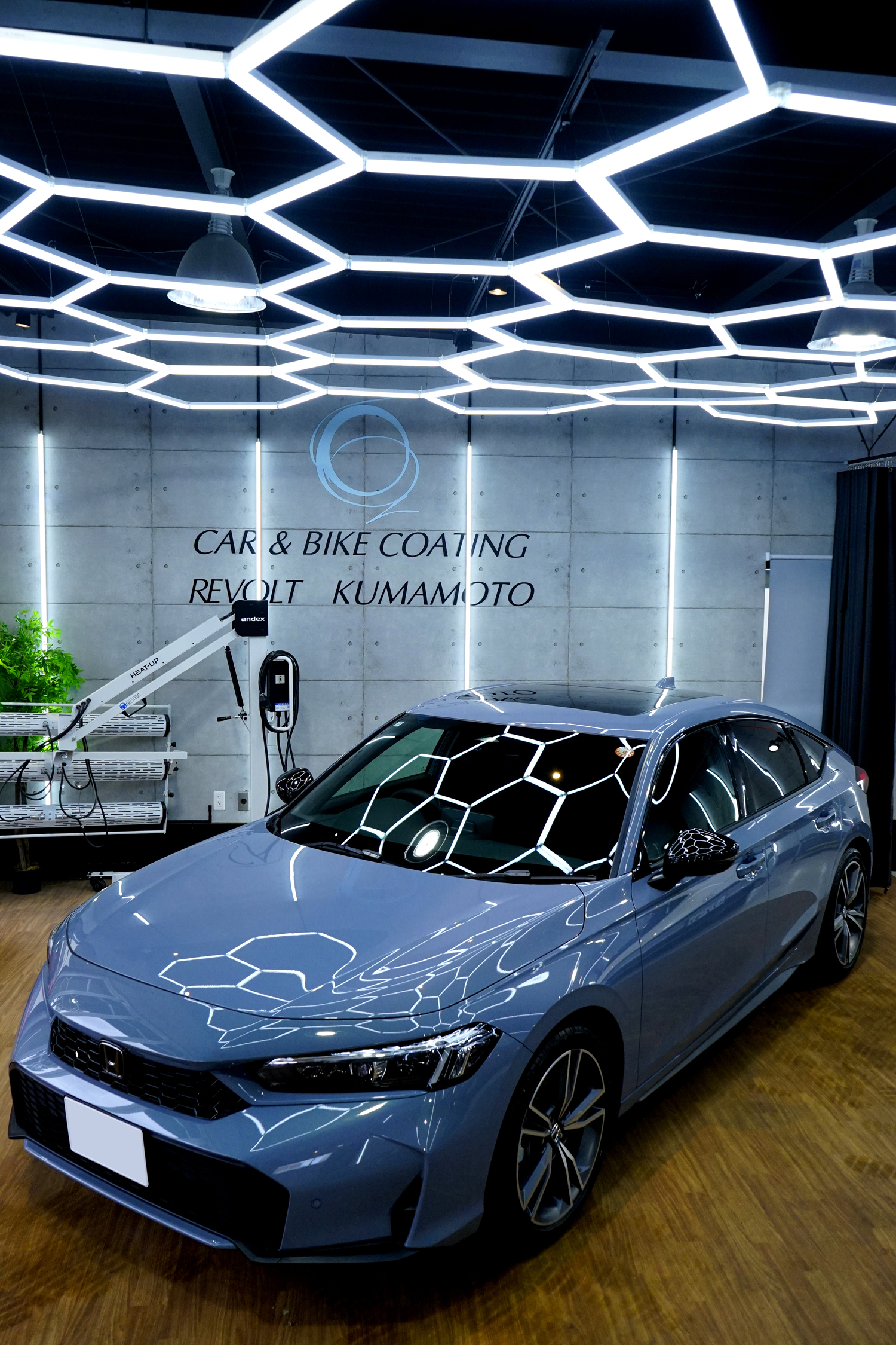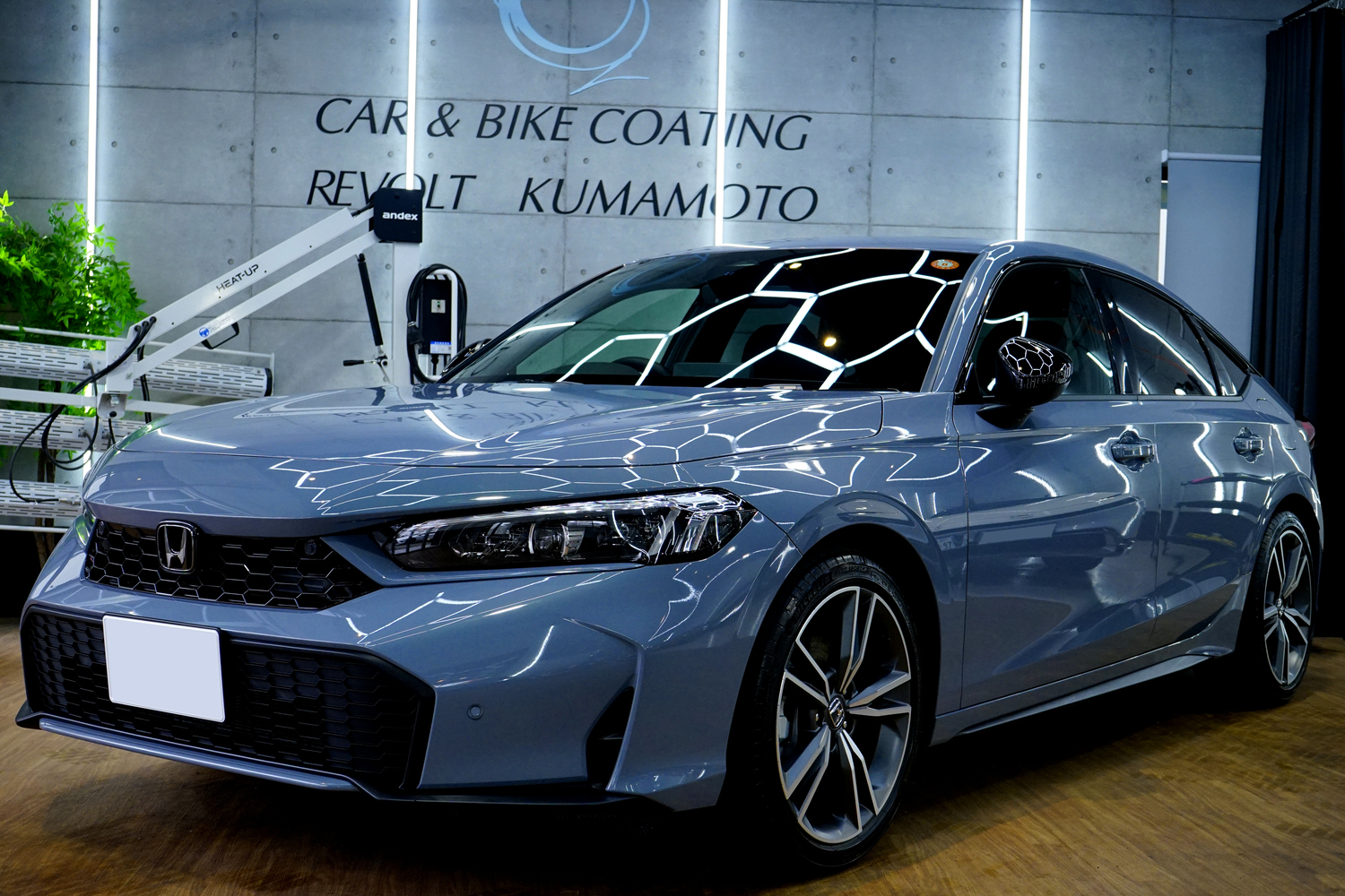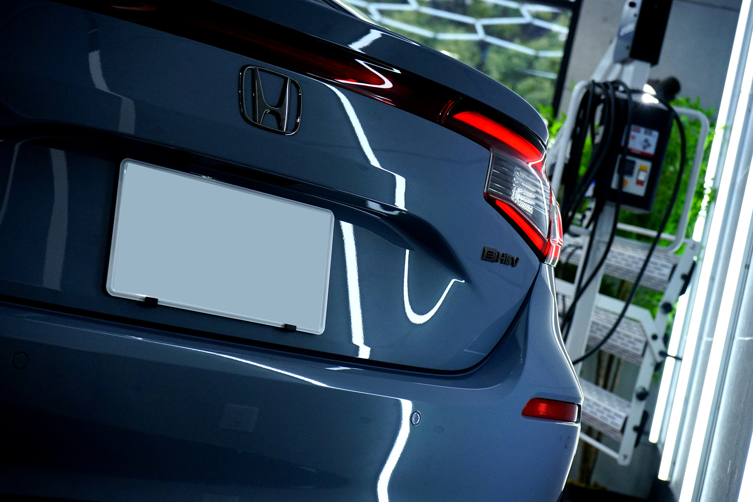 【施工事例】ホンダ シビック e:HEV(ソニックグレーパール)新車コーティング|端正なボディをより美しく、より深く。