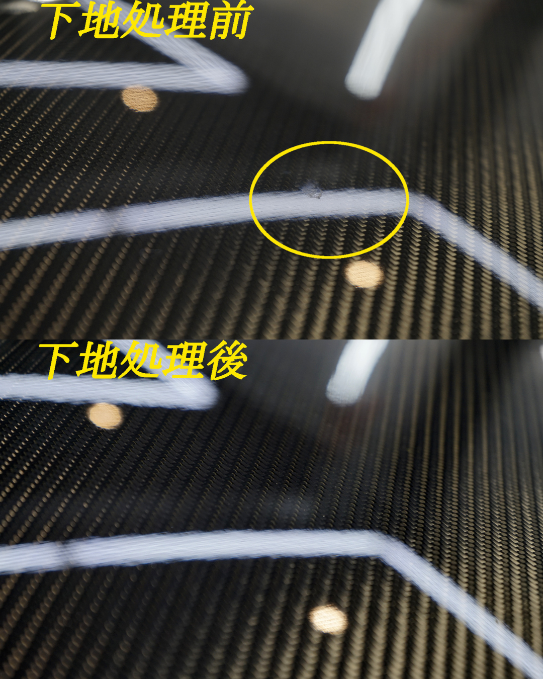 この下地処理によって塗装本来の艶と質感を整えたうえで、