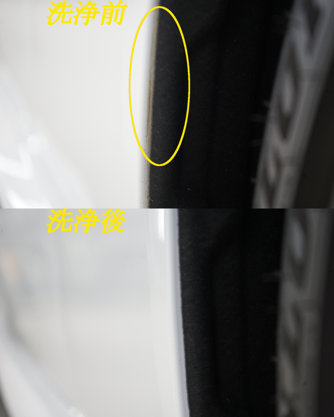 ホイールは1年半前に施工したコーティングの効果も感じられる状態でしたが、