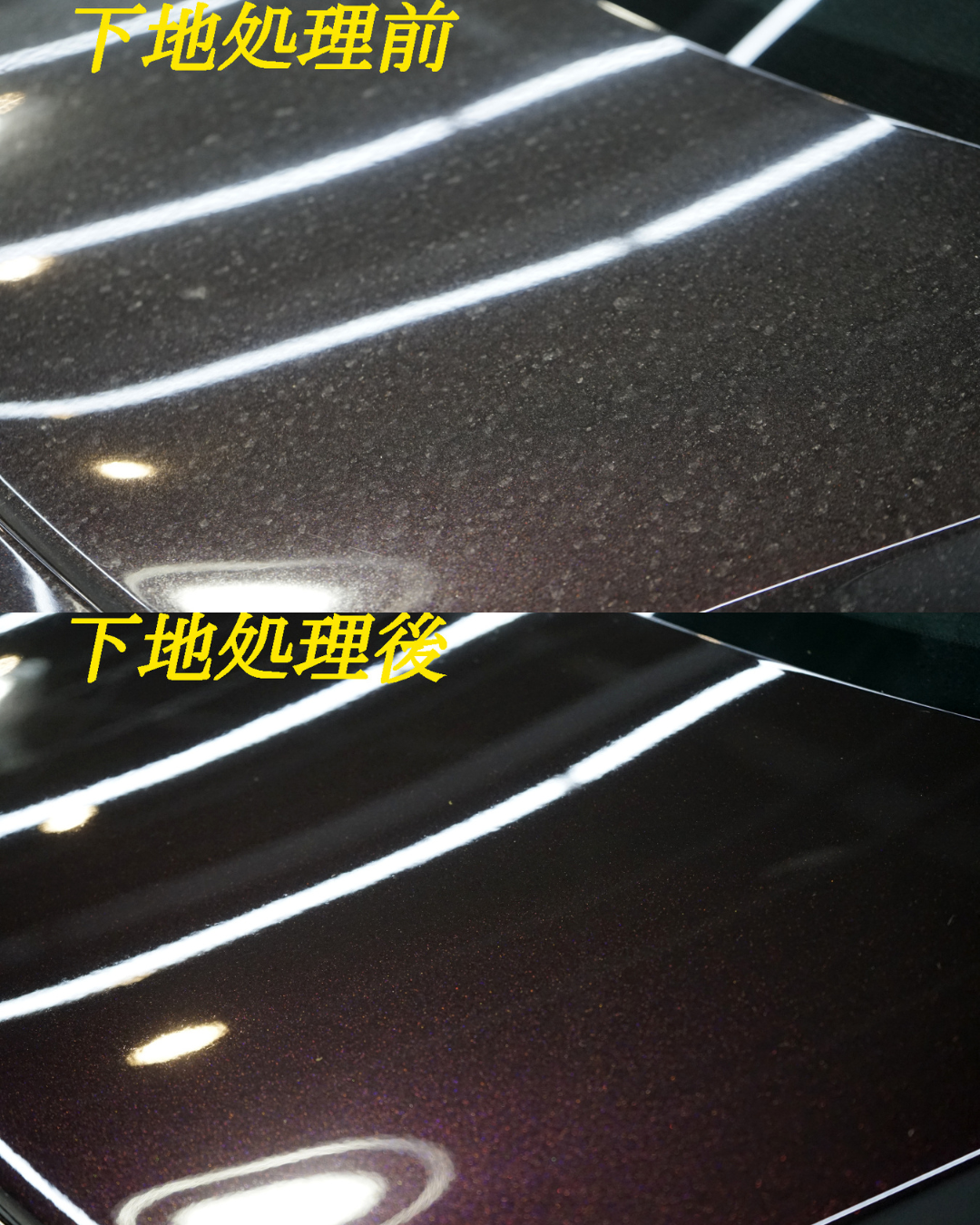 年式や走行距離によるものと思われがちですが実際には適切な下地処理(研磨・水シミ除去・鉄粉除去)を行うかどうかで、仕上がりは大きく変わります。