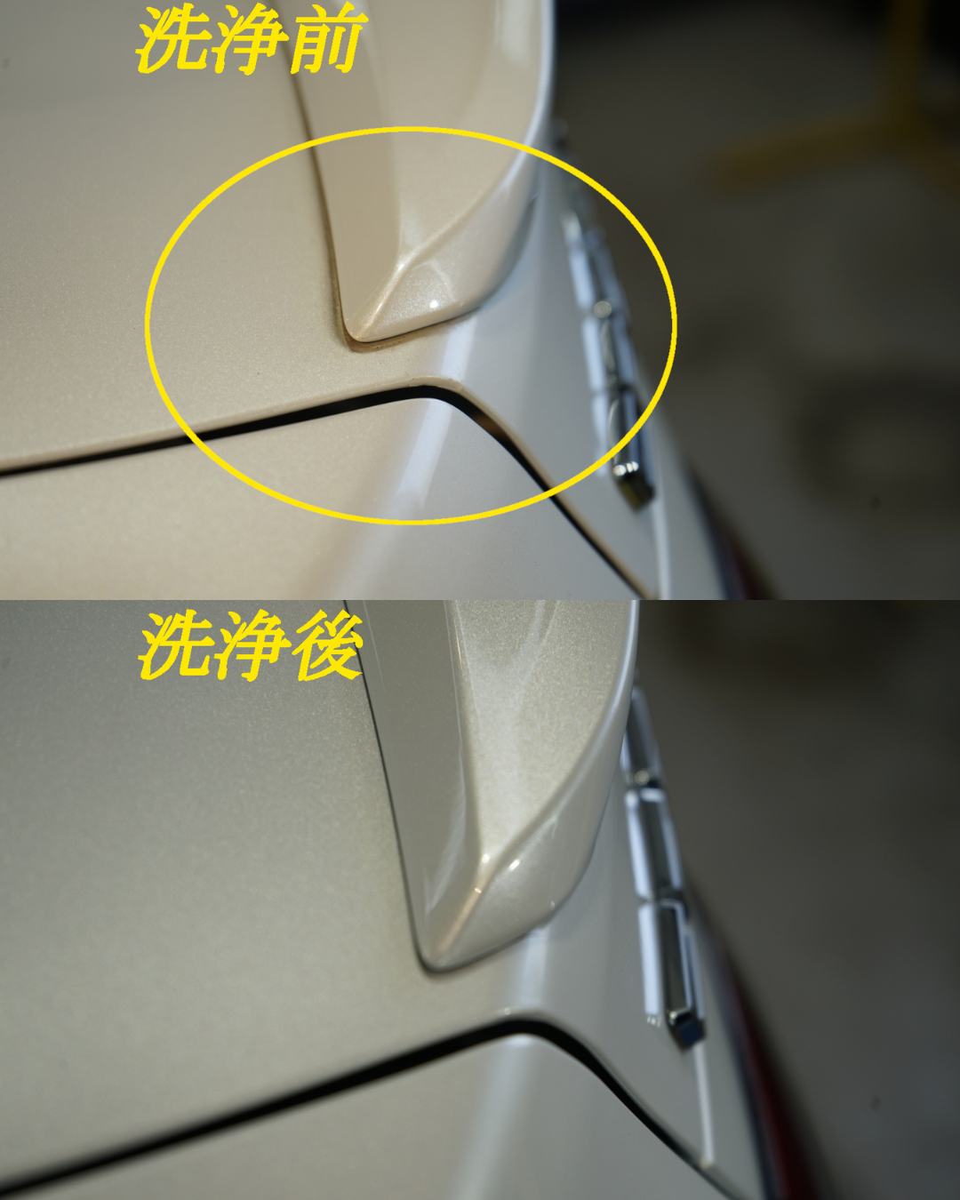 施工後は、曇りが消え、塗装本来のクリアな艶が蘇りました。