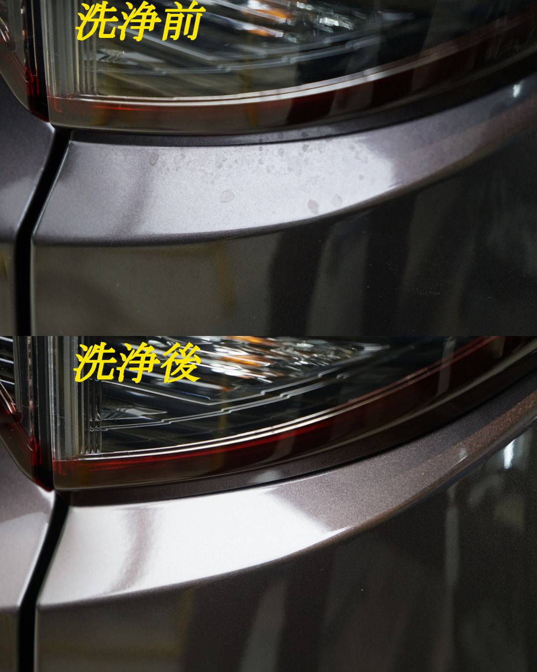 窓ガラスは油膜とウロコを除去してから撥水加工を施工。視界がクリアになり、雨天時の安全性も向上します。ボディとガラスを同時に整えることで、トータルで完成度の高い一台に仕上がりました。