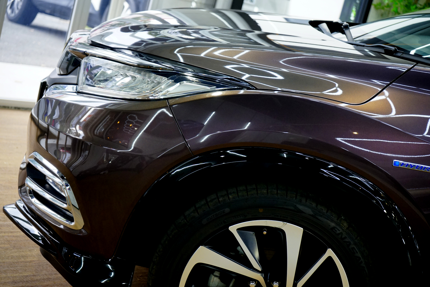 今回のヴェゼルも、研磨で整えた塗装面に施工することで曇りが消え、映り込みが一段とクリアに。