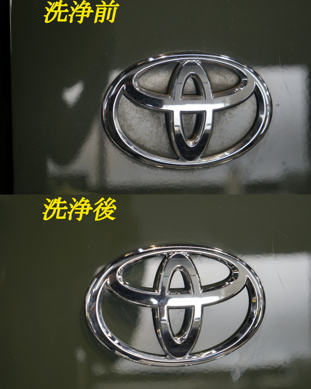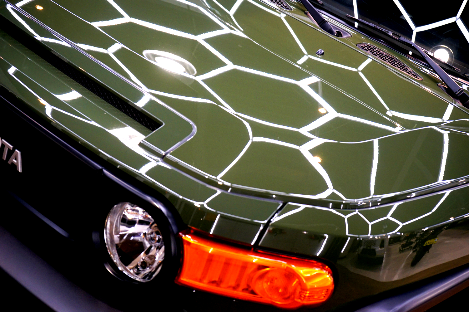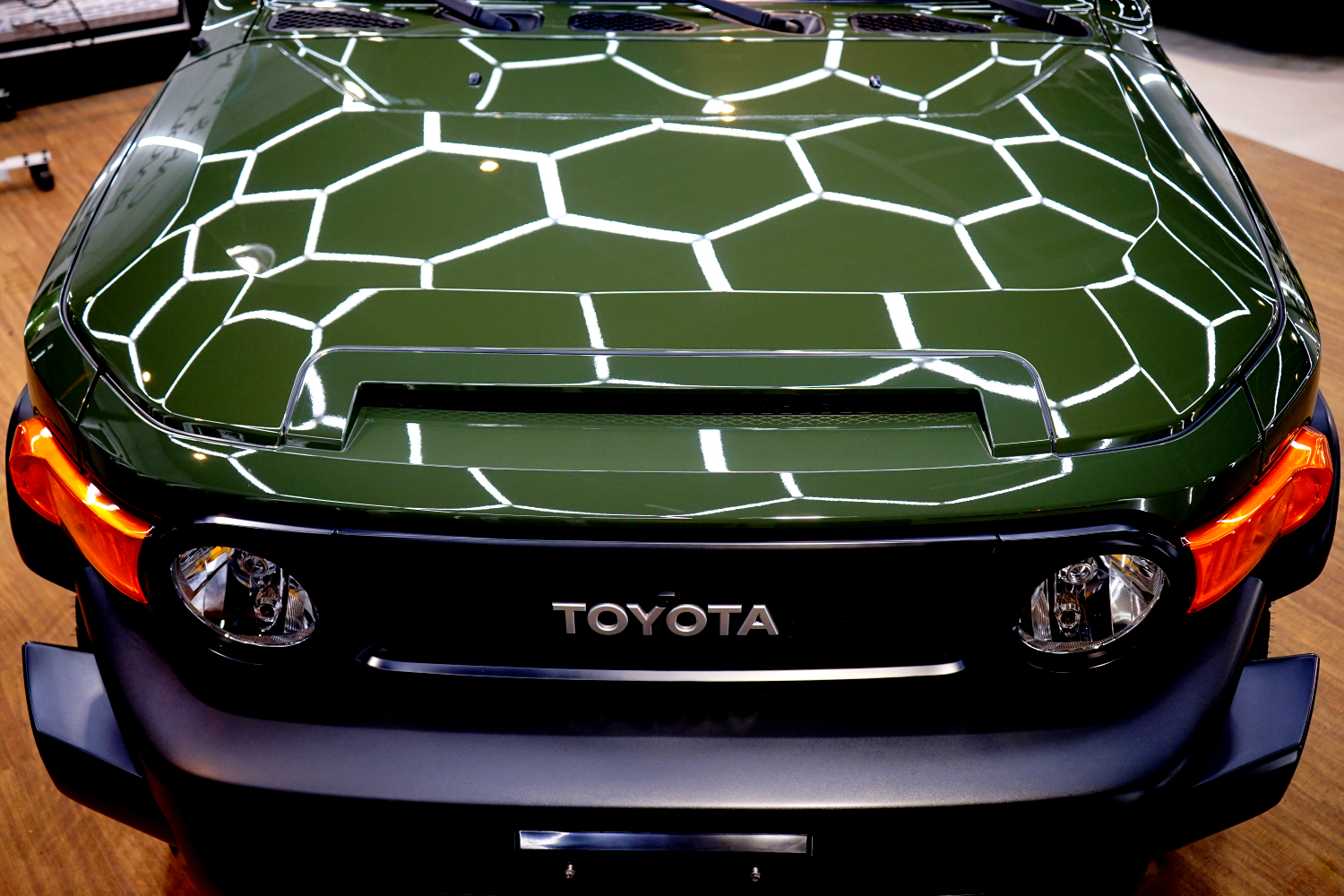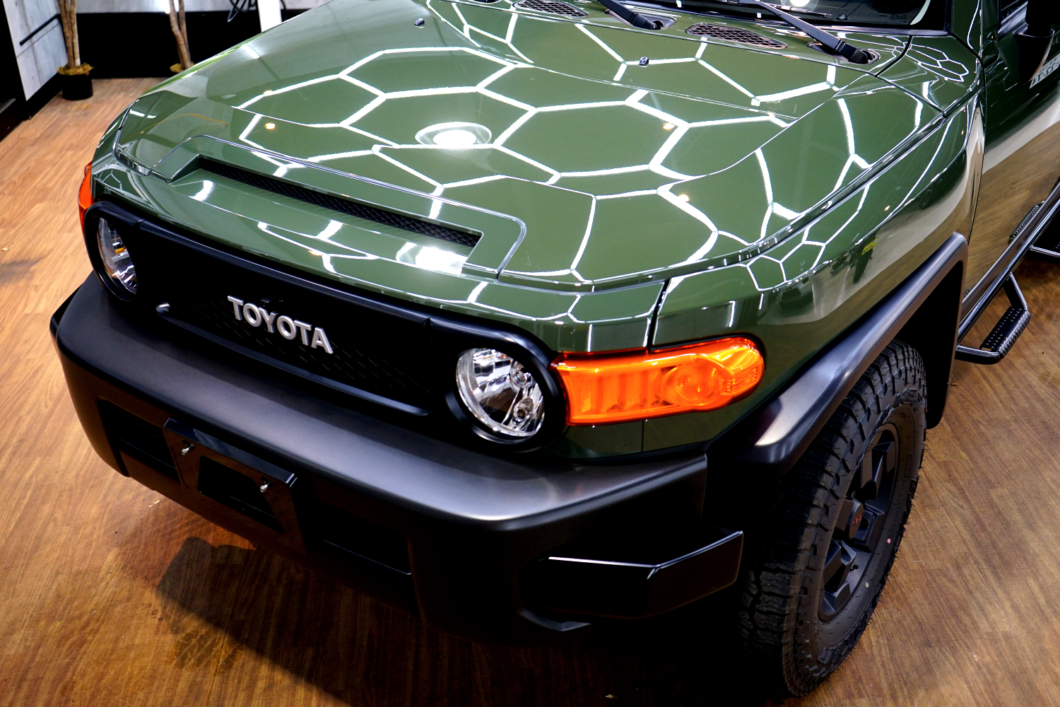 施工後は、これまでぼやけていたボディが一変。光の反射が整い、輪郭がはっきりと浮かび上がるようなシャープな印象へと変化しました。無骨で力強いFJクルーザーのデザインが、より際立つ仕上がりとなっています。